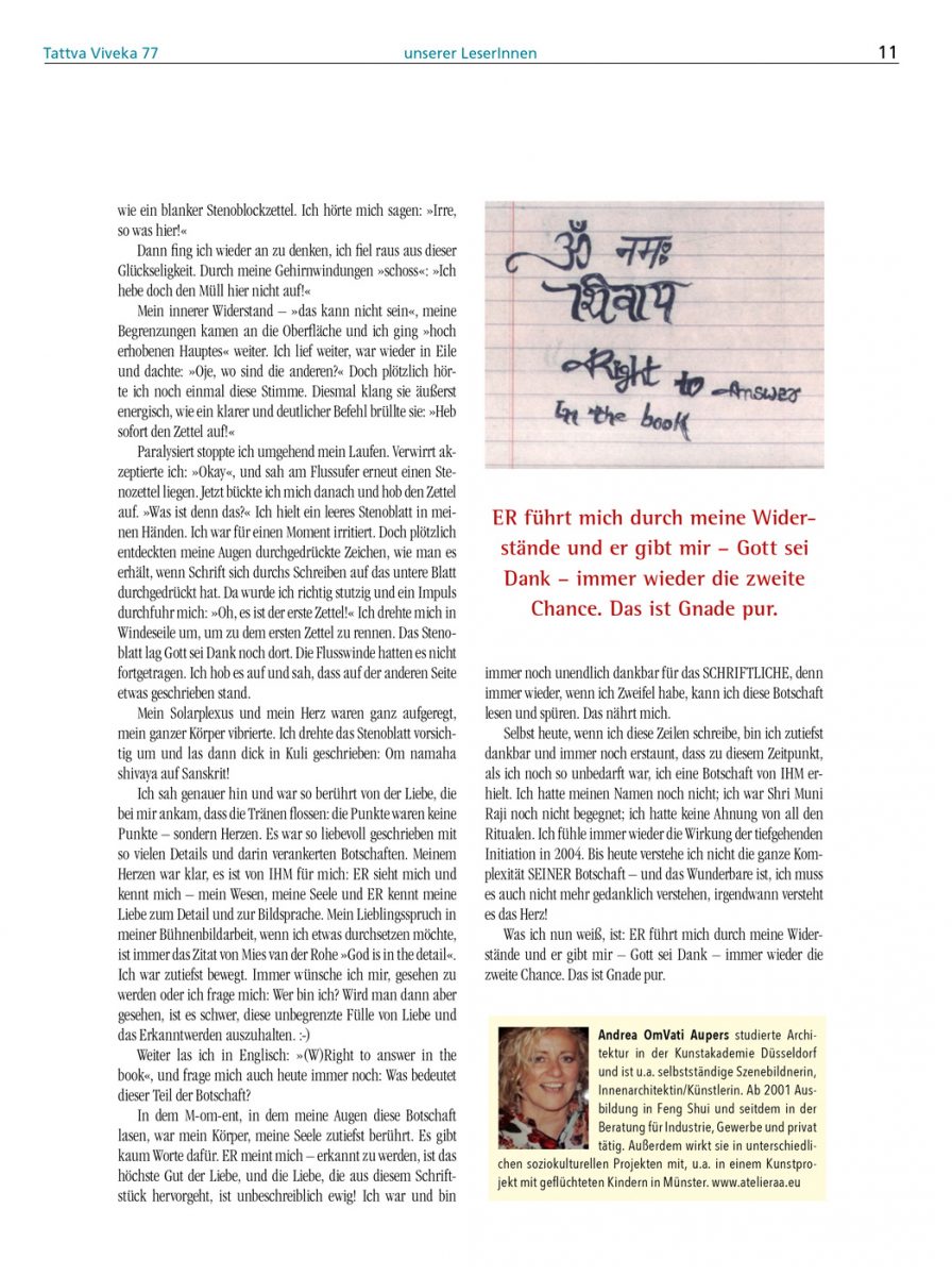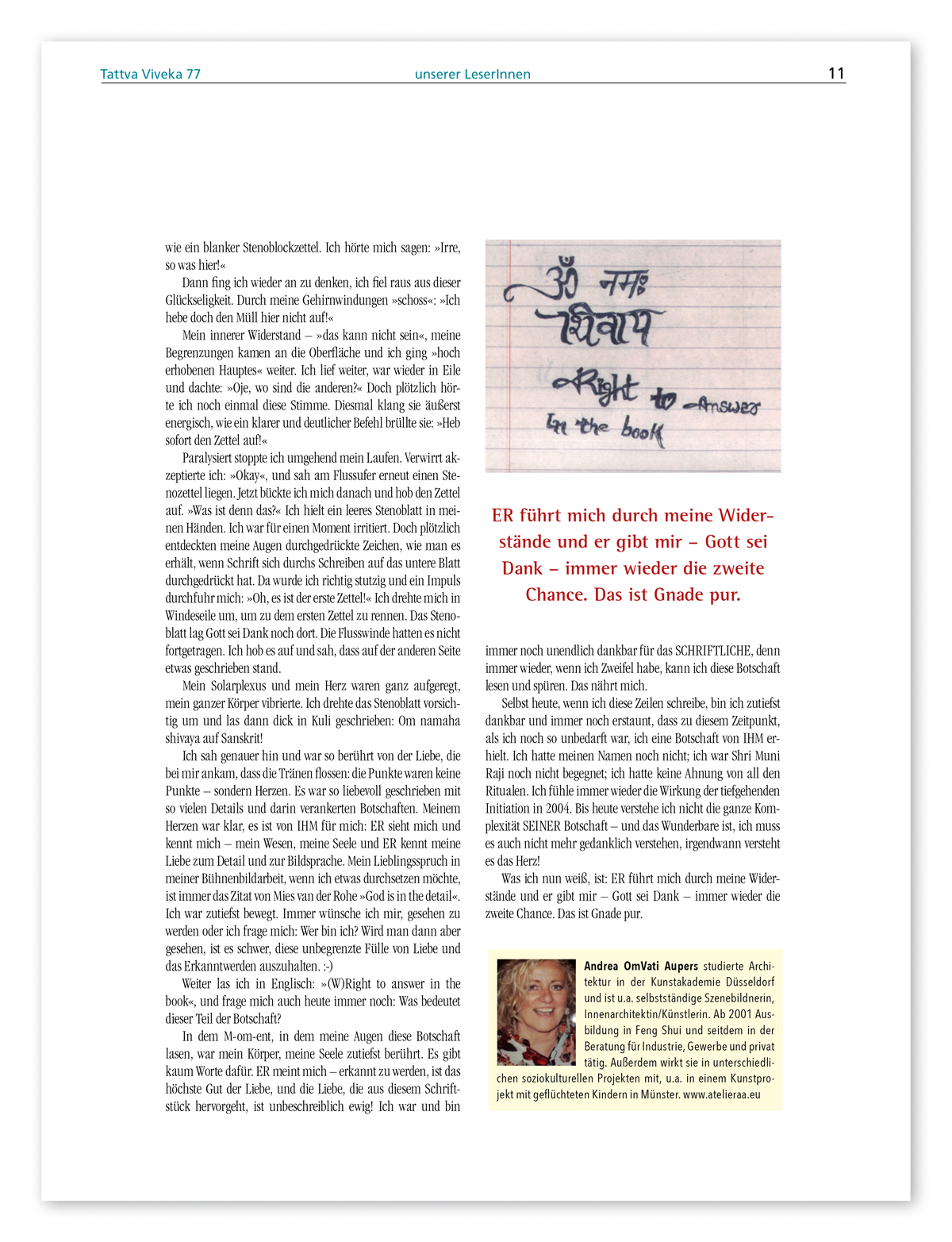And as it happened I did trip of course just as I arrived at Shri Muni Raj’is assan. To my embarrassment I fell right onto my knees and my forehead hit the right foot of Guruji. I was no longer mistress of my body, as if HE had taken me over and managed me. My head shot up again and I looked into the eyes of Shri Muni Raji, or rather I looked into his ONE Eye. And there something quite extraordinary happened: It was as if I looked into a blue universe, an eternal infinite space, while my whole body filled with vibration. And then a point of light, like a little star emerged in the foreground , I saw and felt my soul. He let me stand up and I saw in Shri Muni Raji´s face the most beautiful and wisest smile I ever have seen. Inside I received this message: „True beauty is my home. Wherever there is beauty, I am. This includes all the beauty of the Mother Earth.